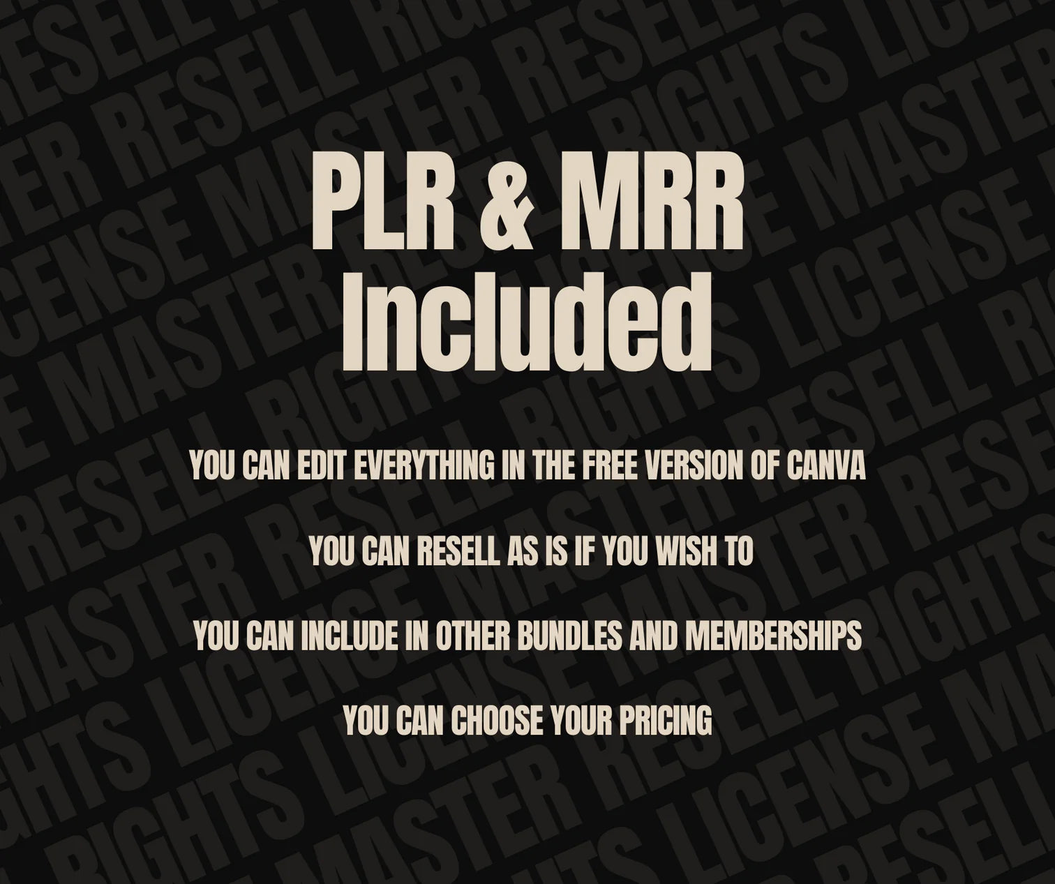 Our digital products come with Private Label Rights (PLR) & The New Rich Rights granting you the freedom to customize, edit, rebrand, and resell as your own.