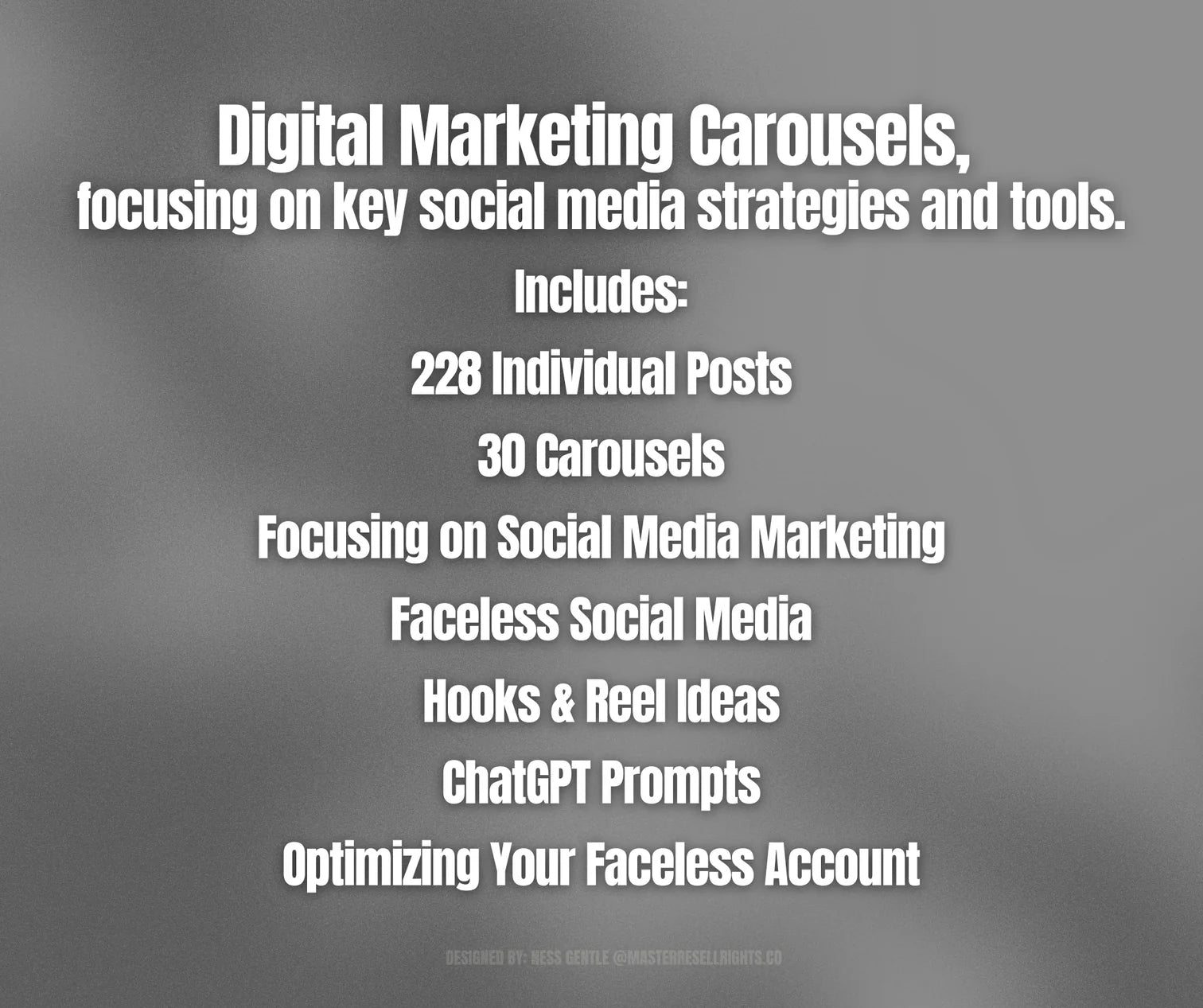 Includes: 30 Digital Marketing Carousels, 228 individual posts